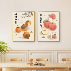 现货速发新中式柿柿如意餐厅装饰画餐桌边柜挂画壁平安喜庭厨房吃