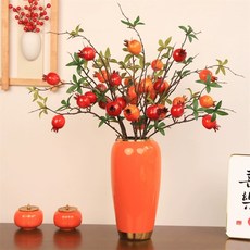 现货速发花石榴果树枝客厅餐桌柿子果实假花玄关插花柿柿如意装饰