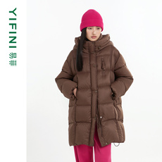 白鹅绒加厚保暖连帽羽绒服中长款宽松外套