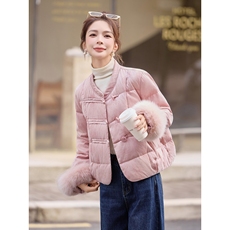 新中式白鹅绒羽绒服女2025冬季保暖高级感狐狸毛袖